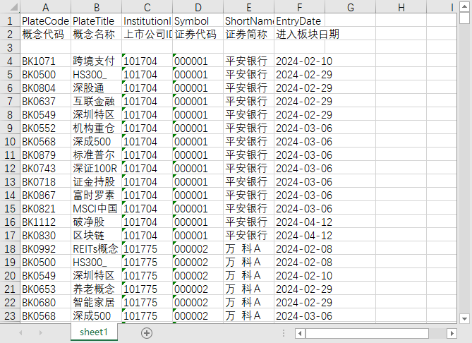 EntryDate [进入板块日期] - 以YYYY-MM-DD表示;取上市公司最新一次进入板块的日期。