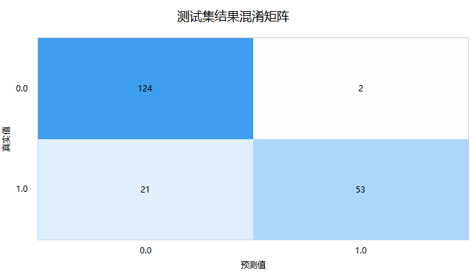 接着进一步查看测试数据的‘混淆矩阵’,即模型预测和事实情况的交叉集合,如下图: