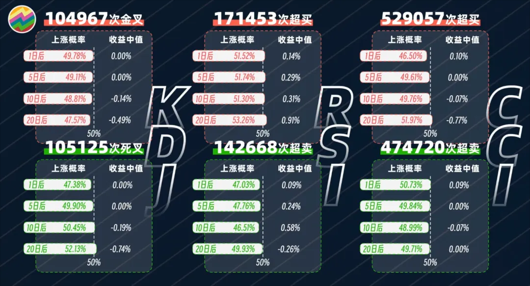 这个结果与我不谋而合:在大A个股上绝大部分指标都是五五开,和抛硬币无差。