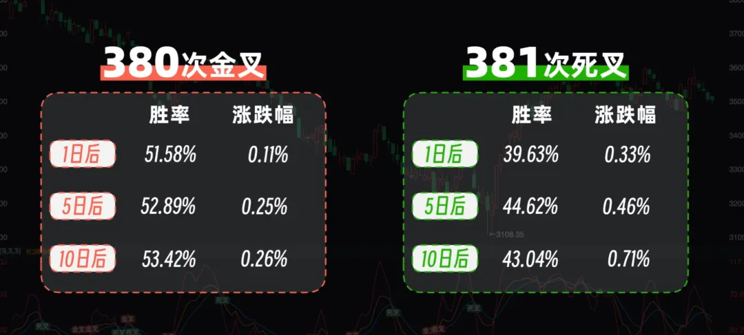 比如最基础的KDJ金叉死叉用法,它在沪深300指数上至今出现过700多次,具体效果如图所示: