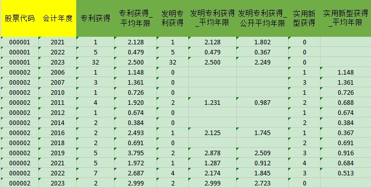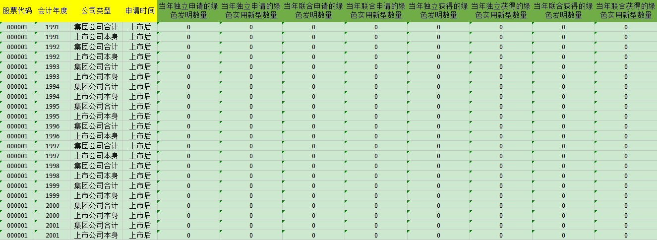 全网最新:1991年—2023年上市公司绿色专利申请he获得情况