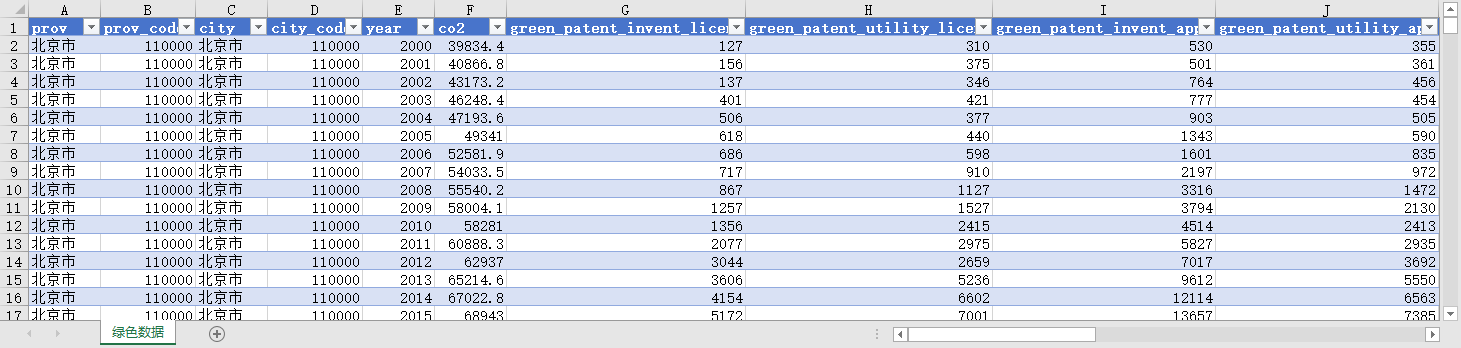 数据简介之前我们分享了地级市二氧化碳的排放量数据,今天我们分享各个城市对于碳排放的降低做出了哪些共享。该数据是地级市2000-2021年间由绿色创新、碳排放与环境规制数据构成的能源与环境研究数据大合集,并对其进行可视化处理,供大家研究使用。