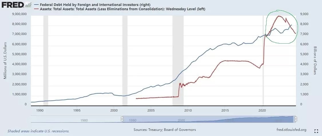 补贴生育,促进人口增加,不仅解决了当前的经济难题,而且有利于应对即将到来的养老金危机,是既利当前更利长远的负责任的财政管理方式。其次,我国当前外汇储备超过3.2万亿美元,在美国ZF债台高筑的背景下,美联储必将大量印钞购买美国国债。美联储的资产总额在2007年底只有8900亿,2022年四月膨胀到8.9万亿,当前为7.2万亿。