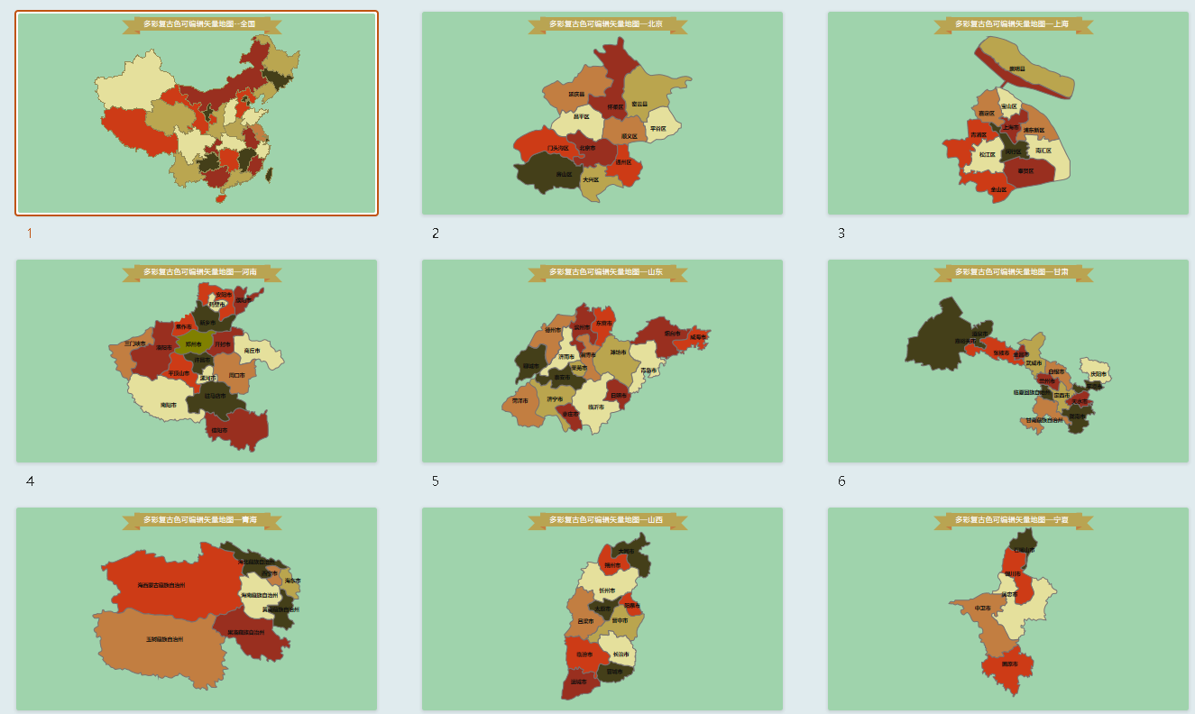 内容特别丰富,特别是矢量地图PPT模板,各省都有,非常适合与规划类项目和讲座展示等场合,比较稀有。