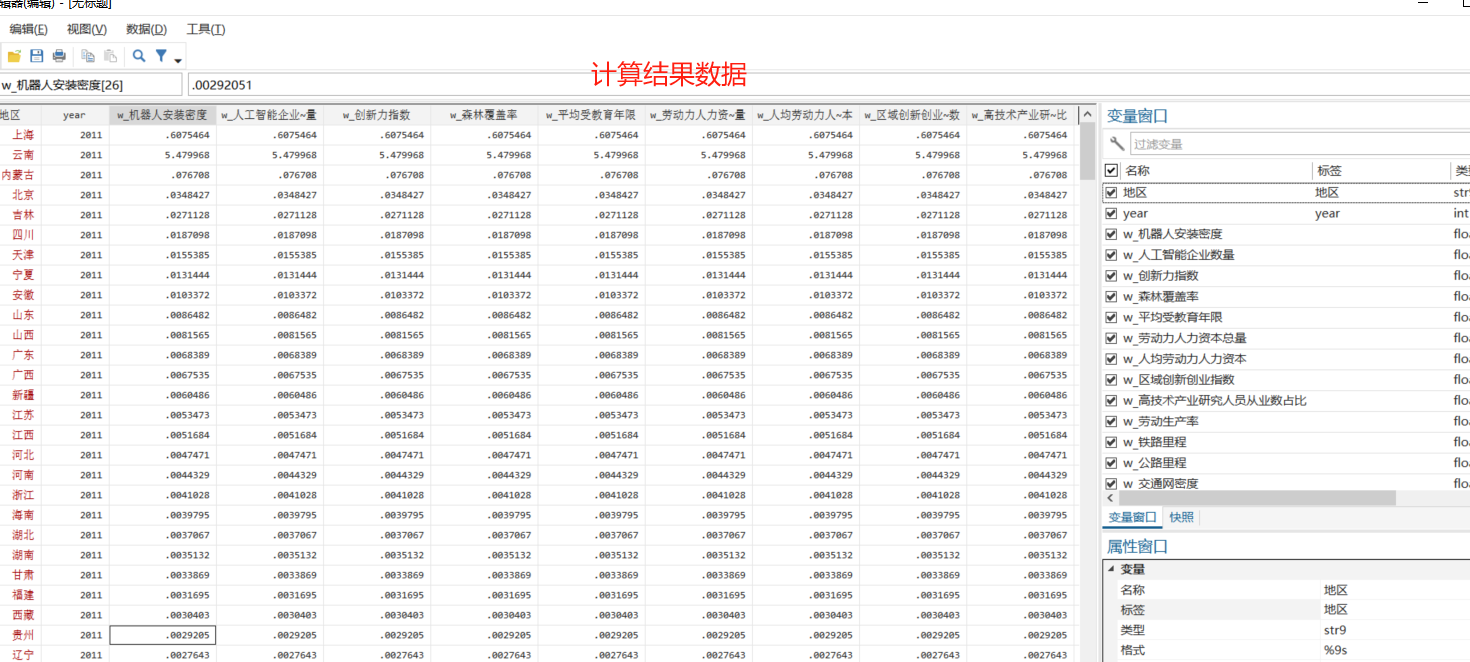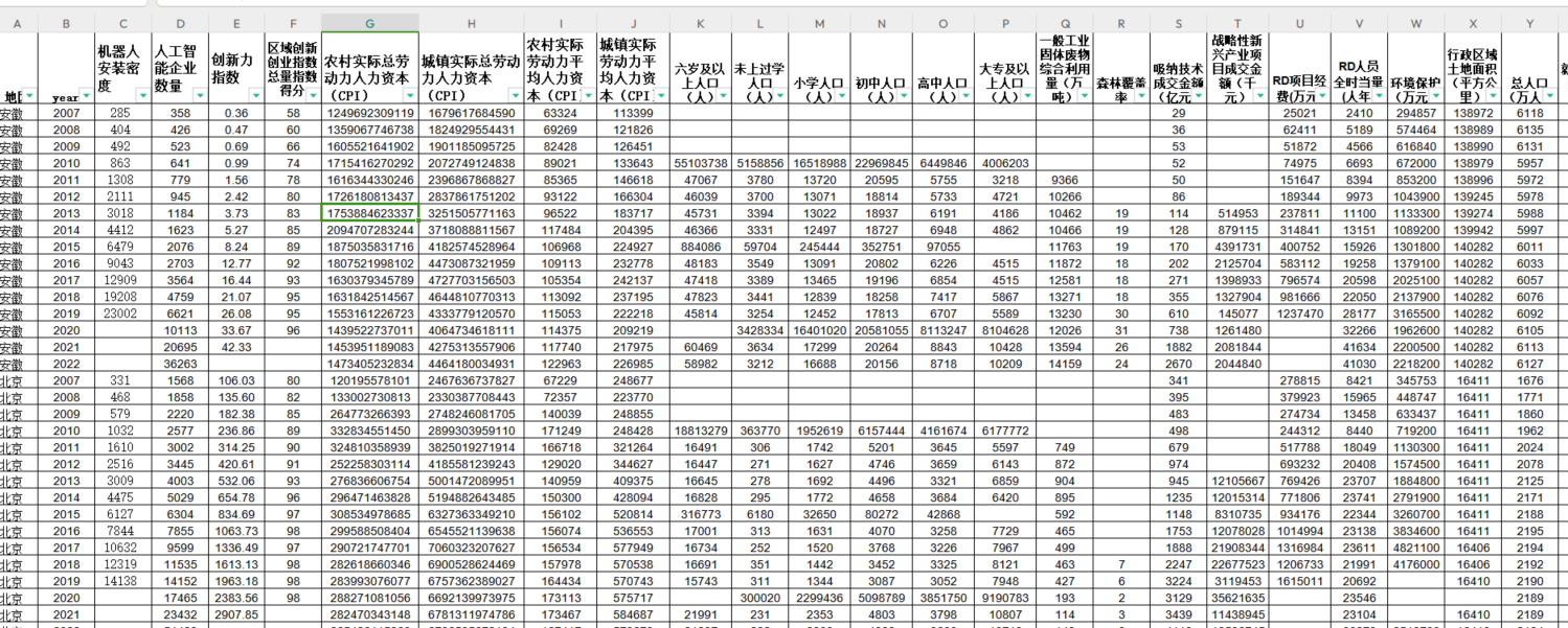 资料是2011-2022年各个省份新质生产力数据,由熵值法进行权重测算,含原始数据、过程数据与操作代码,(所有指标权重、部分数据具体原始来源一并打包无偿赠送给您,包含:1985-2022年中国各省份实际劳动力人力资本(CPI)数据:来源于中央财经大学的人力资本指数 ,城市创新指数2001-2021,机器人安装密度,区域创新指数1990-2020-省级,省市县-人工智能企业数量(2000-2023年))