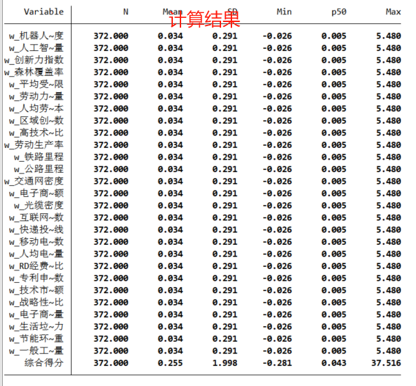 计算过程:采用熵值法来确定各二级指标的权重,且对数据进行了标准化处理
