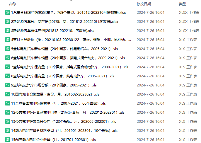 数据范围:分品牌、分厂商、分时间段的产销/充电桩/专利等数据