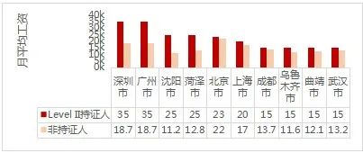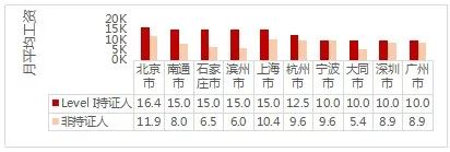LEVEL II持证人群和非持证人群月薪TOP10城市比对