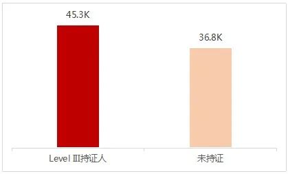 LEVEL III持证人群和非持证人群平均月薪比对