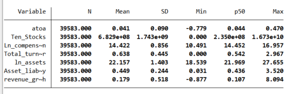 1、数据选取:选择了总资产报酬率来衡量上市公司经营绩效,且作为本文的因变量。