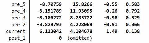 1. **调整参考类别**:您可以将“post”的某个时间点设为参考类,这样其他的时间点就可以与之进行对比。选择一个在政策实施前的时间点作为基准是比较常见的做法。