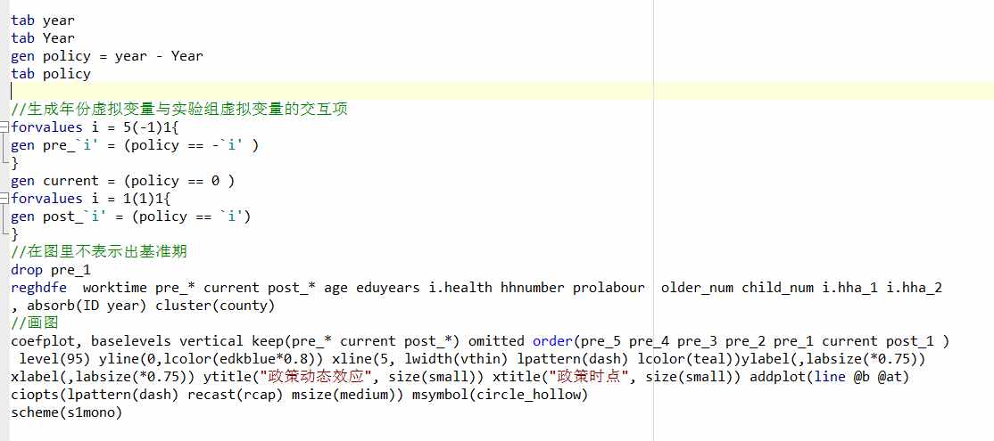 2. **重新编码变量**:如果您的数据允许,可以尝试对时间变量或政策实施标识符进行重新编码,以便保留所有感兴趣的时间点和比较组。