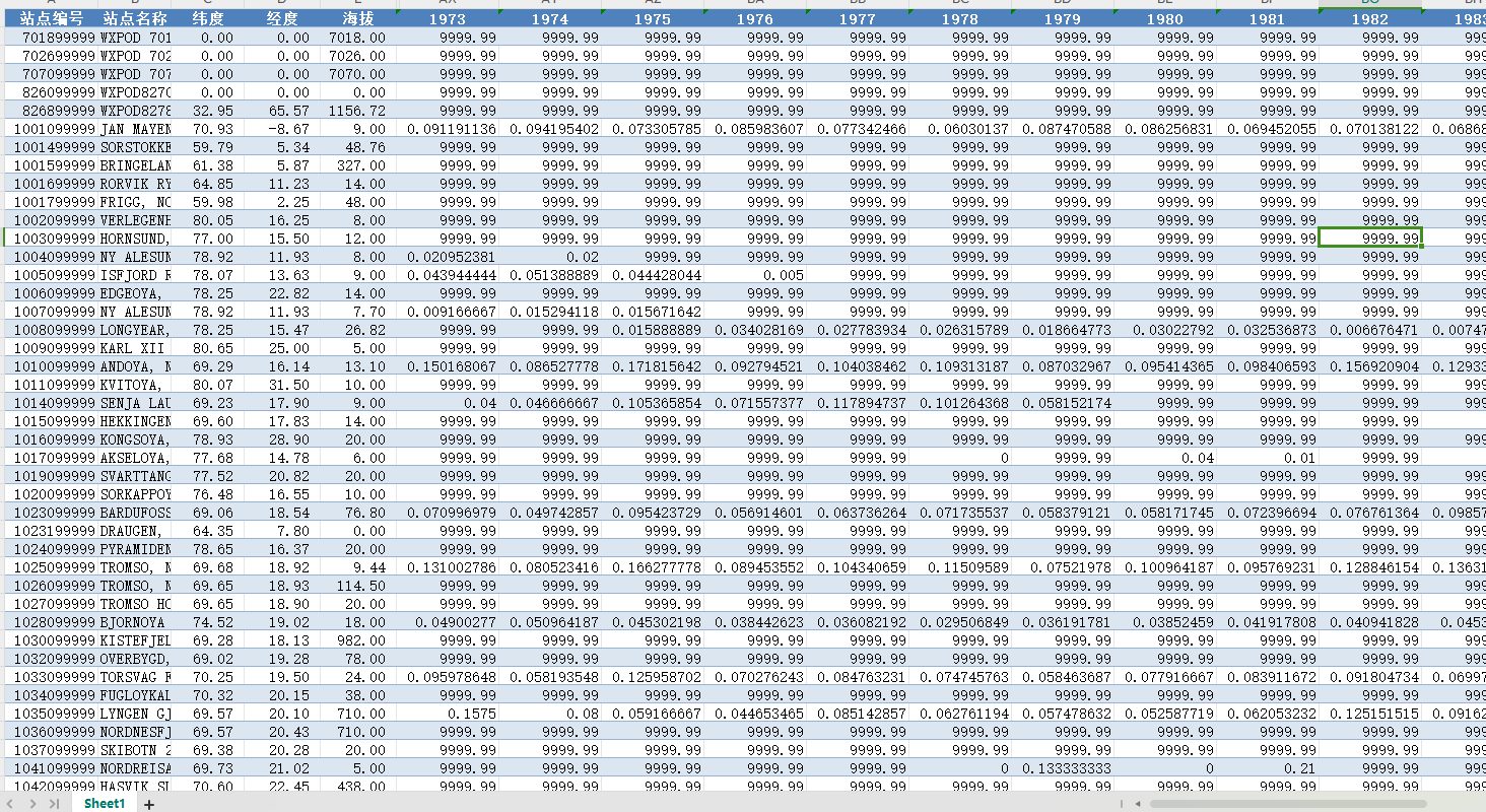 该数据是下载各气象站点1929-2024的逐日平均降水数据,并将其除以年份天数得出的站点年平均气温数据,其中无效值用9999.99表示,2024年的数据到7月20日。