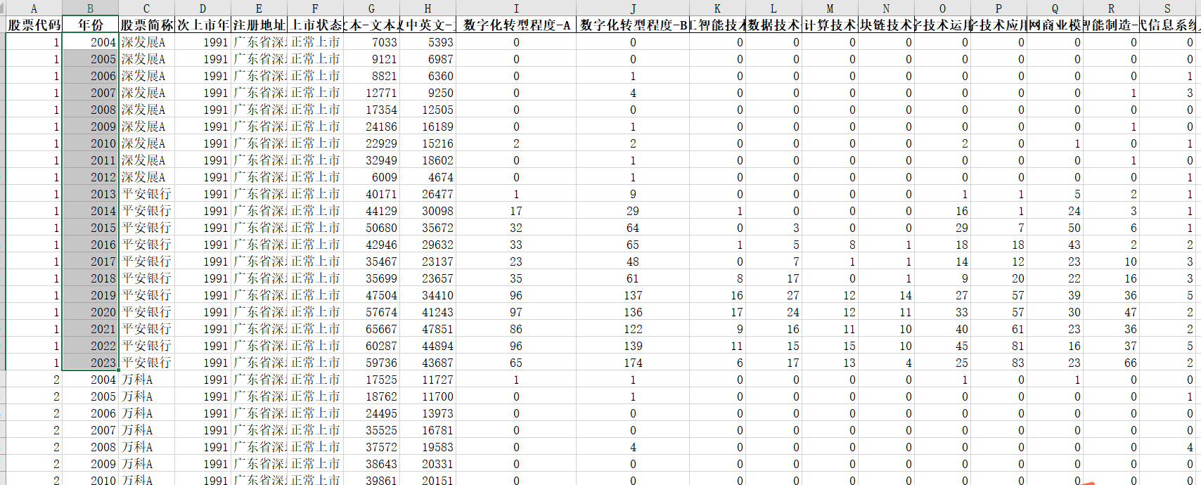 数据范围:5324家上市公司。包括数字化转型关键词词频在内,共统计了194个变量。