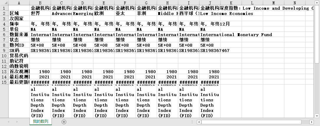 金融机构深度指数:所有国家或地区 金融机构深度指数:发达经济体 金融机构深度指数:新兴经济体 金融机构深度指数:欧洲 金融机构深度指数:亚洲和太平洋 金融机构深度指数:非洲 金融机构深度指数:中东和中亚 金融机构深度指数:西半球 金融机构深度指数:Low Income and Developing Countries 阿尔巴尼亚 阿尔及利亚 安哥拉 安提瓜和巴布达 阿根廷 亚美尼亚 阿鲁巴 澳大利亚 奥地利 ...