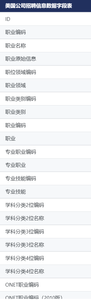 美国公司招聘信息数据,涵盖互联网招聘平台、公司等数万个公开来源,本数据采用了自然语言处理的方式进行了职位、岗位职责、行业等内容的标准化处理,包含职位名称、专业技能、学科分类、产业分类、公司名称、地址、薪资、经验要求、学历要求、数据来源、发布日期等字段。