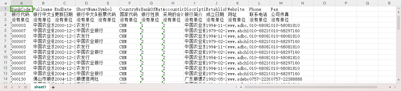 银行代码 银行中文全称 更新日期 银行中文简称 股票代码 国家代码 银行性质 采用的会计准则 银行简介 成立日期 网址 联系电话 公司传真