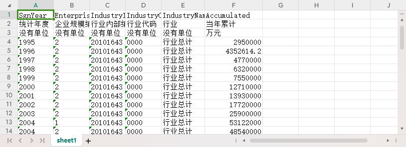 统计年度 企业规模编码 行业内部编码 行业代码 行业 当年累计