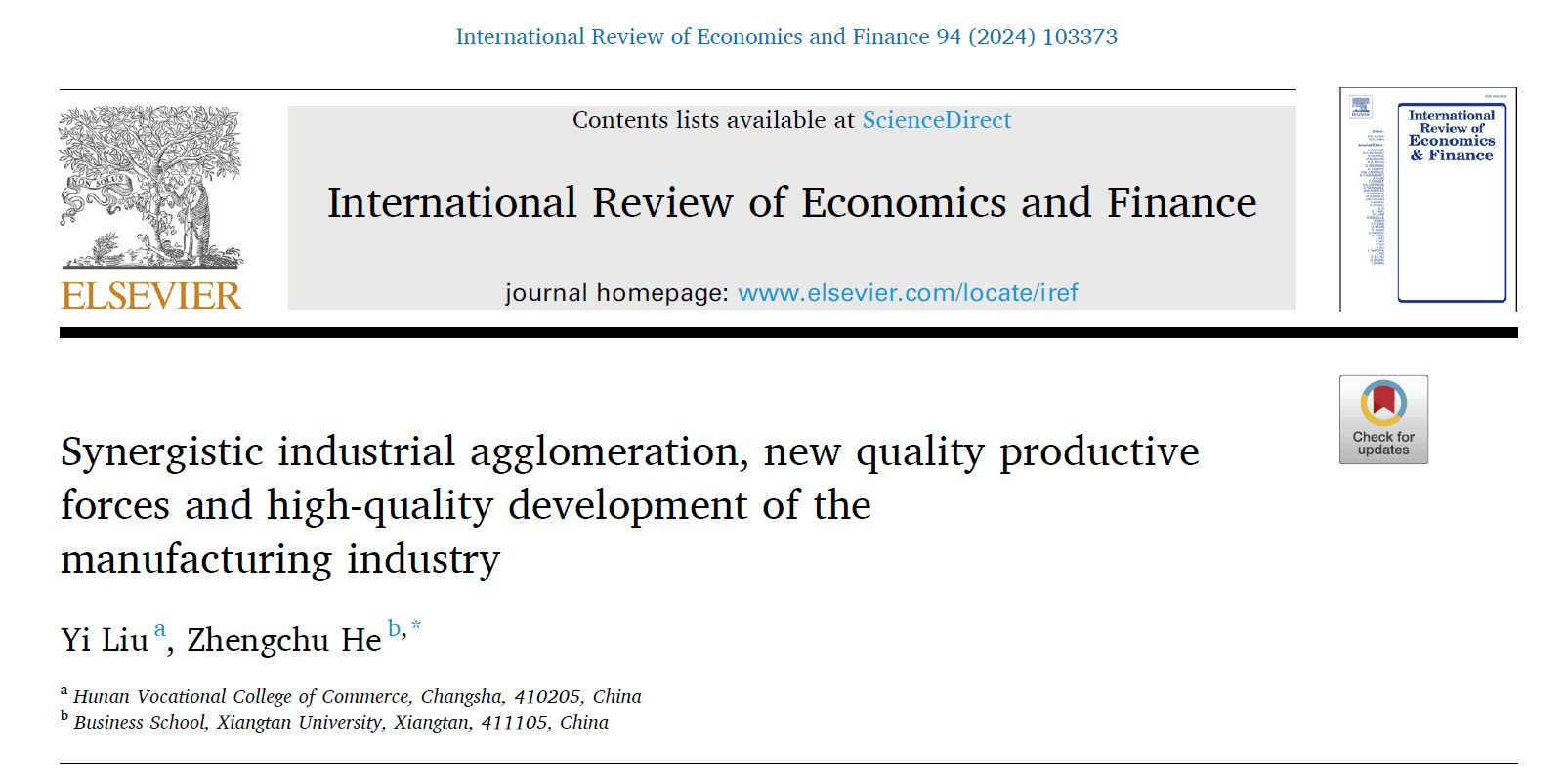 Liu, Yi, and Zhengchu He. "Synergistic Industrial Agglomeration, New Quality Productive Forces and High-quality Development of the Manufacturing Industry." International Review of Economics & Finance (2024): 103373.