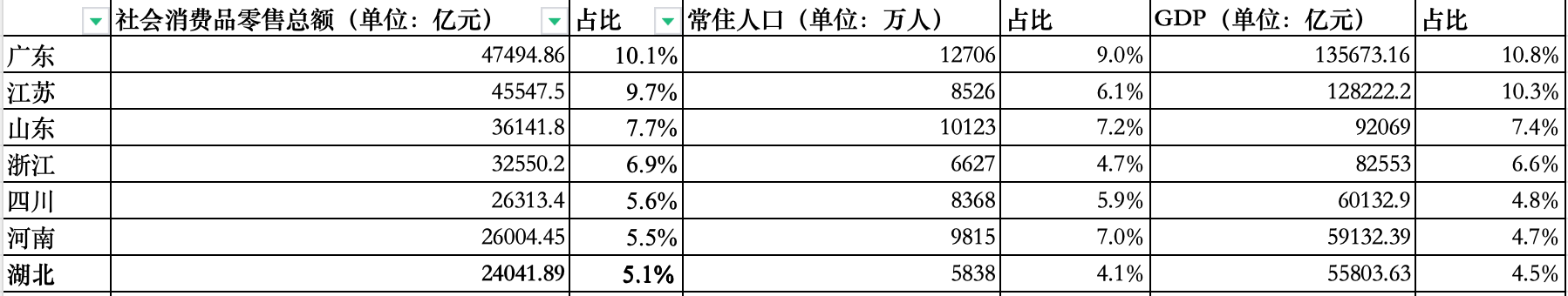 2023年各省社会消费品零售总额、常住人口及GDP数据及占比(无缺失)