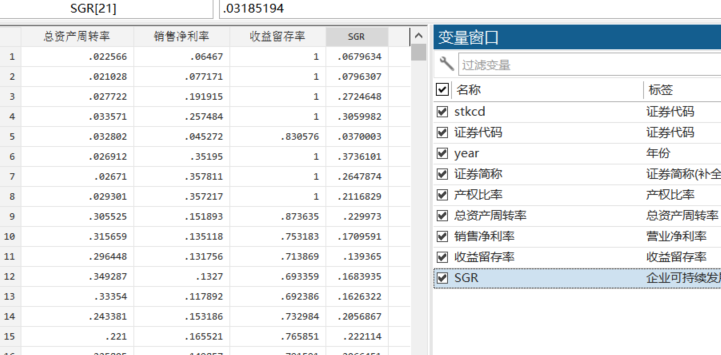 衡量企业可持续发展有多种方法,鉴于业绩可持续增长模型能够衡量上市公司是否具有长期的盈利能力和持久的竞争优势[25],本文借鉴刘斌、黄永红( 2002) [26]等的研究方法,同时考虑到本文研究是基于静态面板数据,因此按照范霍恩可持续发展静态模型构建企业可持续发展指标,并对上市公司可持续发展能力进行衡量。