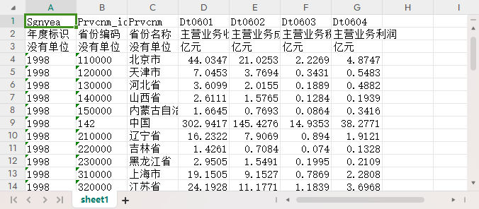 年度标识 省份编码 省份名称 主营业务收入 主营业务成本 主营业务税金及附加 主营业务利润