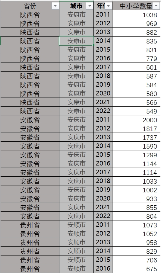 【完整】2011-2022年287地级市普通中小学数量(1)