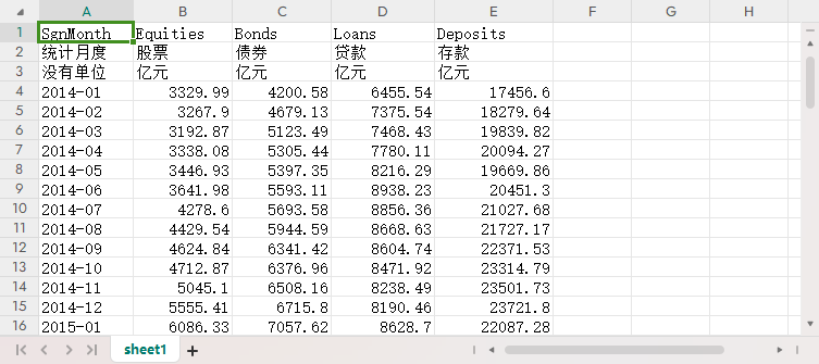 统计月度 股票 债券 贷款 存款