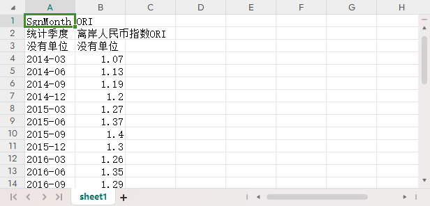 人民币国际化中国银行离岸人民币指数表(季)2014-2023统计季度离岸人民币指数ORI