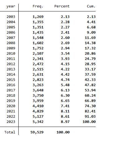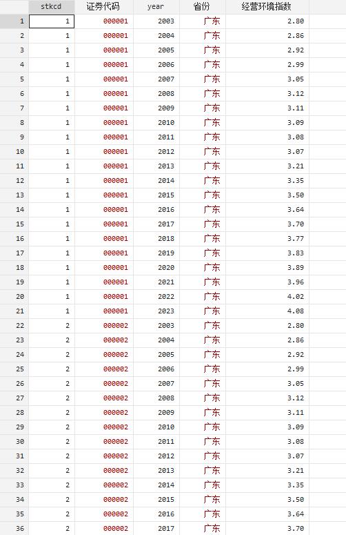 计算结果:将“2003-2023年经营环境指数”和“公司资料”(上市公司注册地所在省份)进行匹配之后的数据,方便大家直接使用