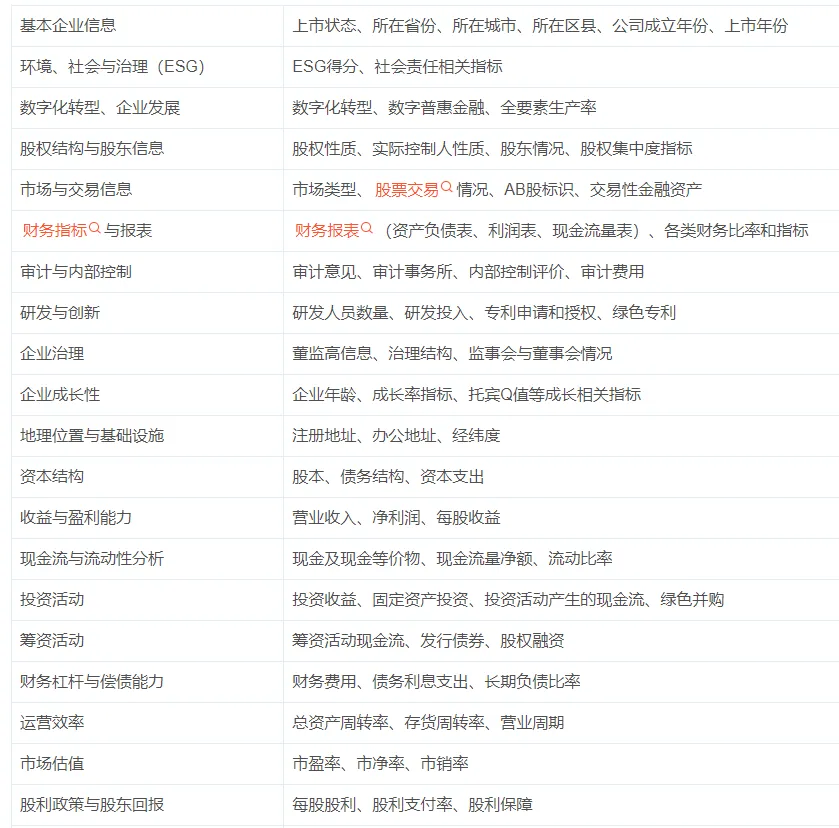 制造业企业是指从事原材料加工和制成品生产的公司,包括汽车、电子、机械、化工、食品加工等。它们通过将原材料转化为半成品或成品,推动经济增长和技术进步。制造业在促进就业、推动工业化进程和提高国际竞争力方面发挥着关键作用,是经济发展的重要支柱该数据包括上市公司制造业的基本信息、财务指标、环境、社会与治理、数字化转型、企业发展、全要素生产率等指标。