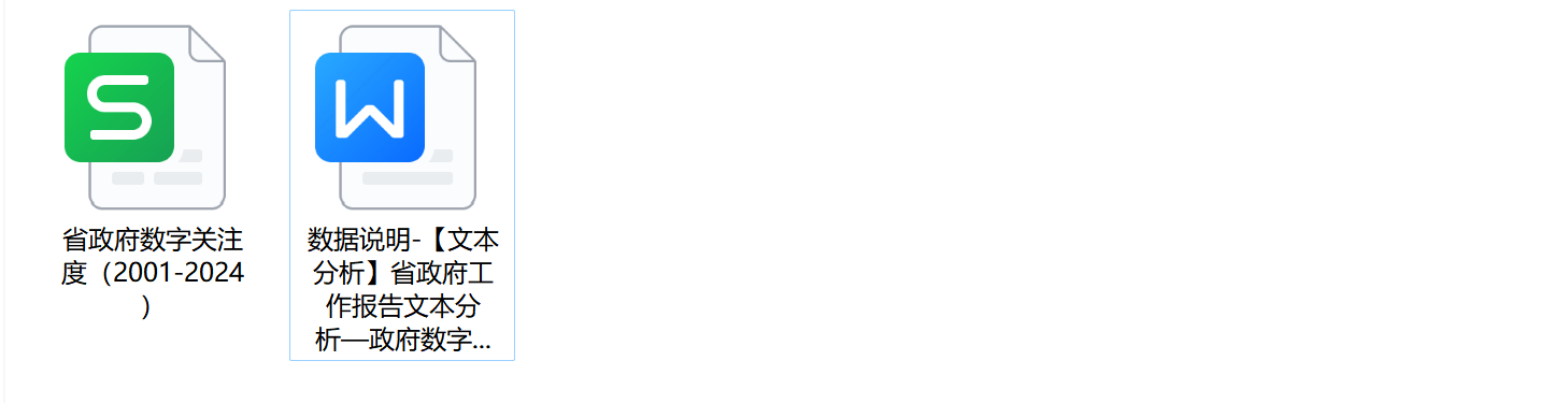 数据名称:各省份政府数字经济发展重视度数字关注度01-24年基于工作报告的文本分析数据