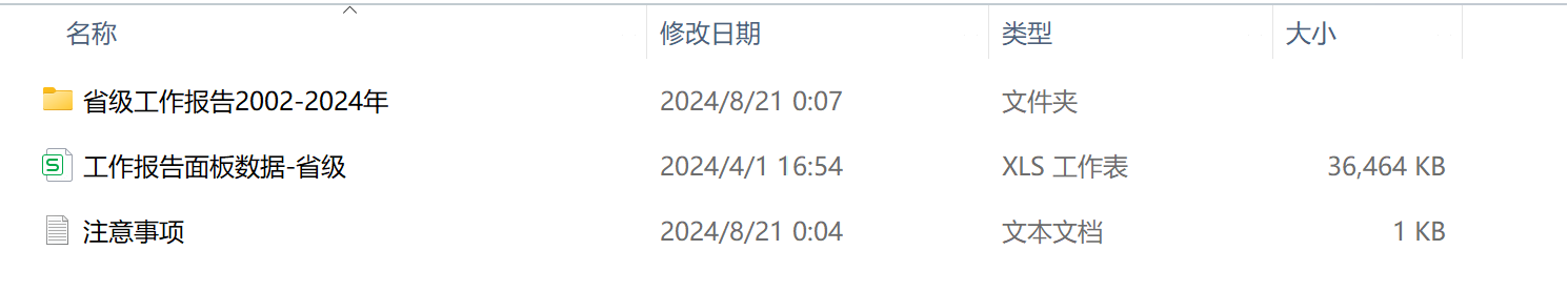 数据名称:文本分析ZF行为特征及关注度原始数据各省份ZF工作报告原文02-24年数据