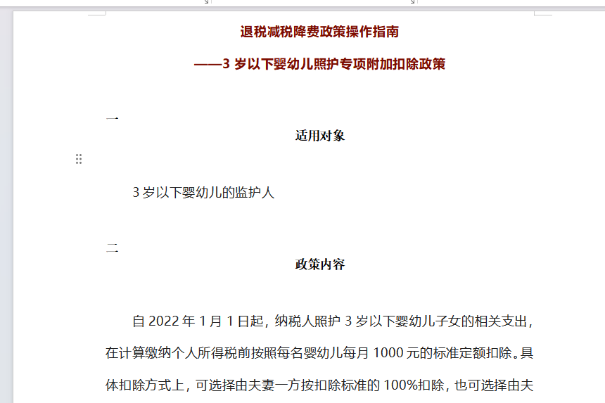 退税减税降费政策操作指南3岁以下婴幼儿照护专项附加扣除政策.doc