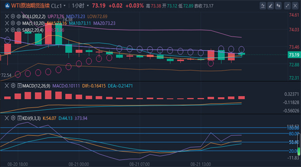 【原油技术面分析】:原油技术面来看4小时MACD死叉,绿色量能柱放量,KDJ随机指标同步死叉向下运行,短线走势偏空无疑。4小时和1小时周期盘面上布林带和各均线指标都是空头排列,今日欧美盘思路只做空,低位做多只能等尾盘再参与。原油期货价格上周五跌破76美元水平,确认了80附近双重顶形态的完成,并在周一日内基础上受到预期的下跌压力,行情受限,预计,看跌趋势将在接下来的交易时段继续占主导地位,目标首先是73.0美元,进一步可能延伸至72.50美元和70.00美元整数关口区域。然而,若价格重新突破76.2美元,此处是日线中轨压力,能够保持在其上方,下跌情景将停止,价格有望重新推高。原油策略:  目前行情建议在76.0位置稳健做空。73.0位置轻仓做多。
