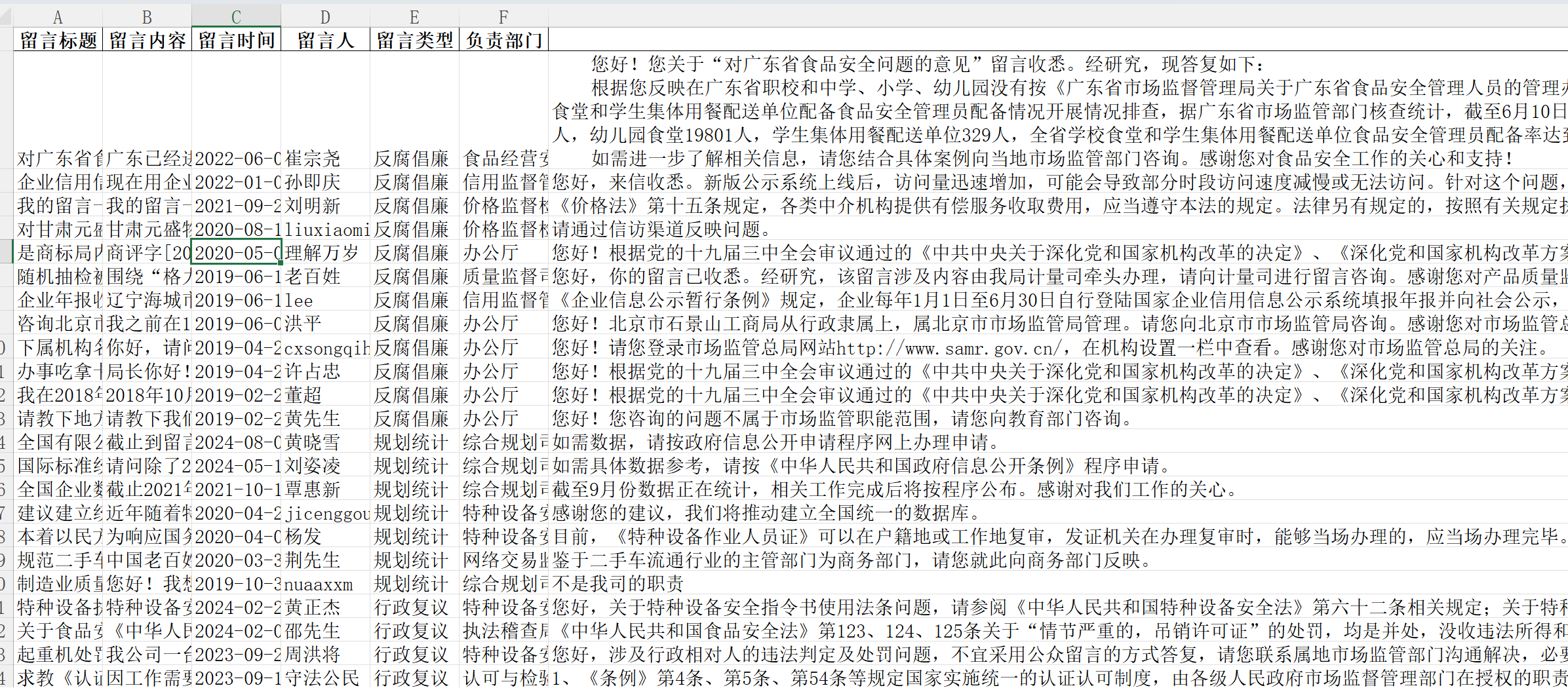 数据名称:市场监管消费权益保护数据之国家市场监管管理总局留言数据2018.12-2024.8