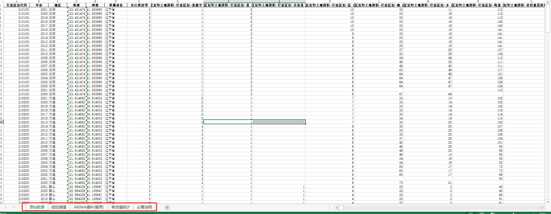 辽宁省面板统计数据库(包含四个页签:原始数据、线性插值、ARIMA填补、有效统计值四个页签),整理了辽宁省统计年鉴2001-2022年,数据年度2000-2021年,包含省级数据,及辽宁省14个城市数据。