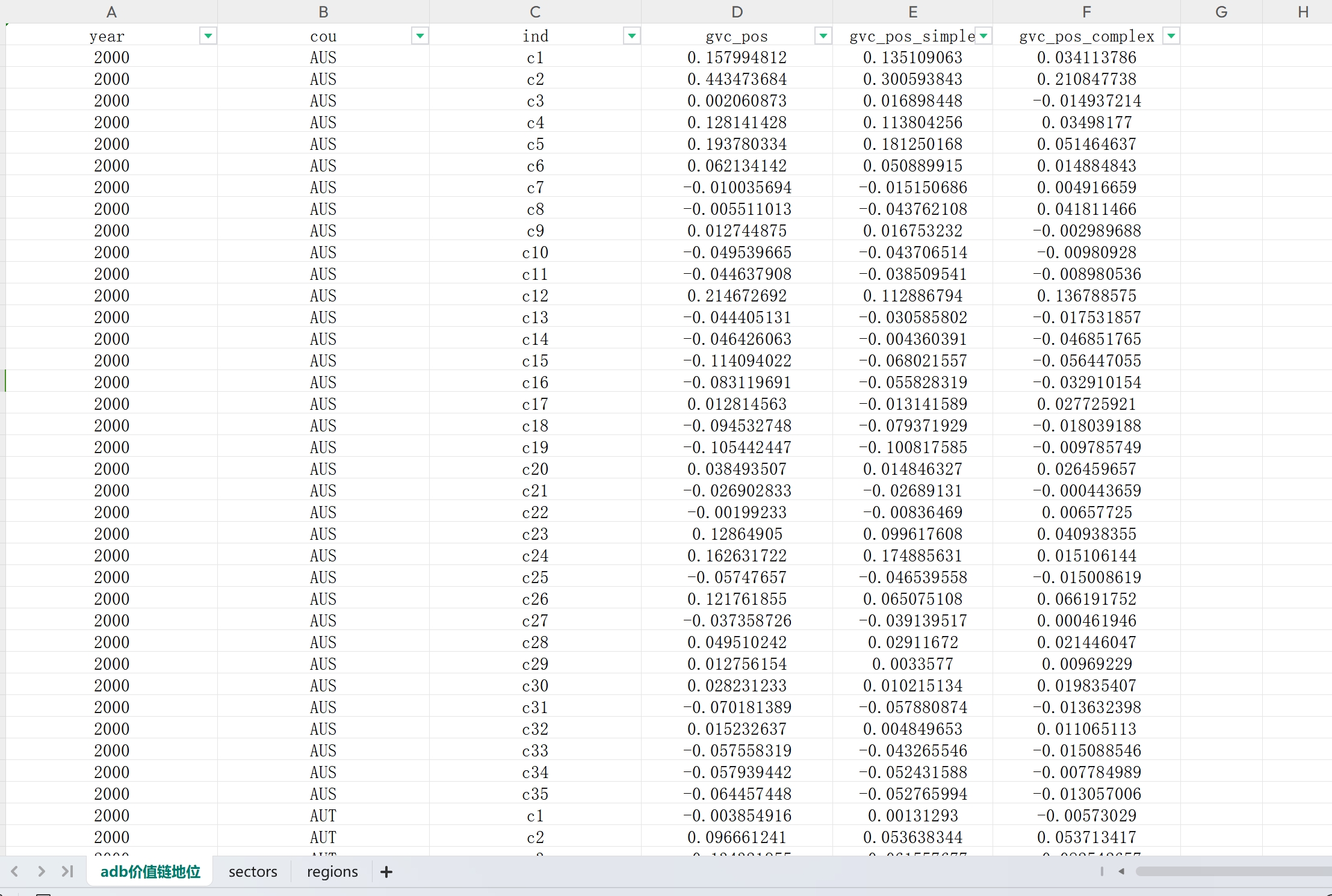 全球63国家分行业价值链地位指数、参与度数据(2000-2021)全球63国家分行业价值链地位指数、参与度数据