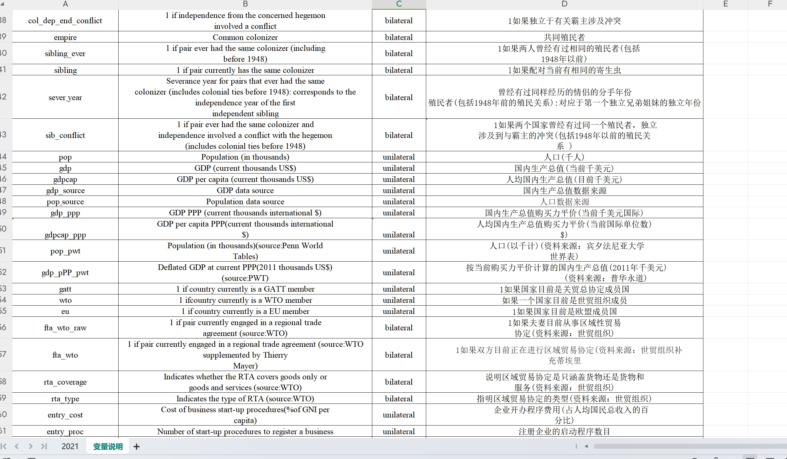 !!!包含:是否签署同一自贸协定,文化距离,首都距离,distcap,包括是否为殖民地,是否有共同边界,是否共同语言等68个指标,全网最全