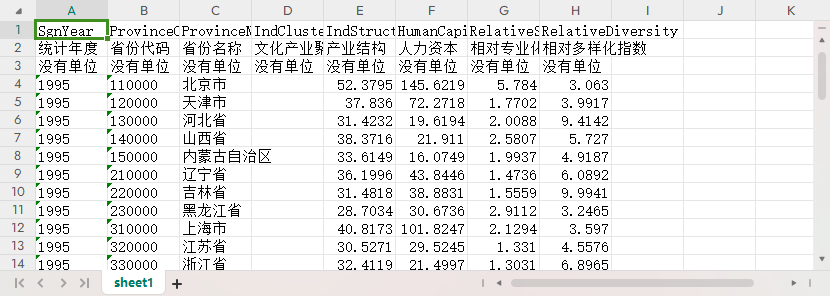全国各省份地区文化创意竞争力评价表1995-2022文化产业聚集程度产业结构人力资本相对专业化指数相对多样化指数