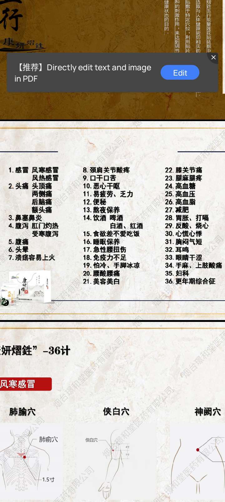 18、大腿股四头肌麻木,炙太渊穴,病因为肺所主之症。配放血法。<br>