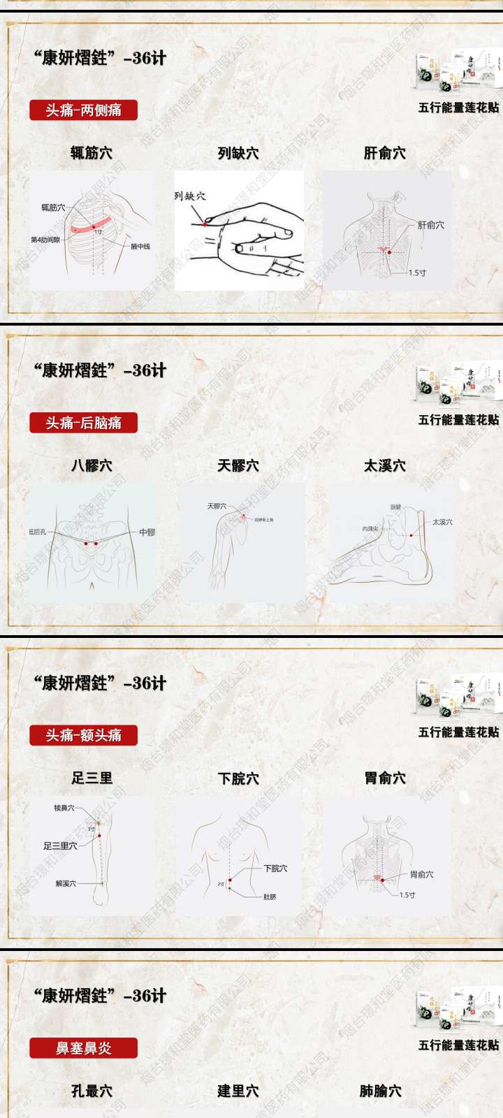02、 头冷痛,前额痛,受寒时疼痛加重,头部畏风怕冷,常要戴帽子,天冷鼻塞呼吸不利,可分辩气味,天热时症状消失.病因为气虚血瘀,灸百会穴,上星穴,拨揉风府风池穴。<br>