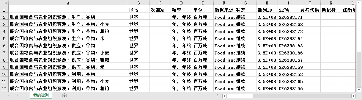 联合国粮食与农业组织FAO全球世界生产供应利用贸易期末存货谷物小麦粗粮大米2003-2024