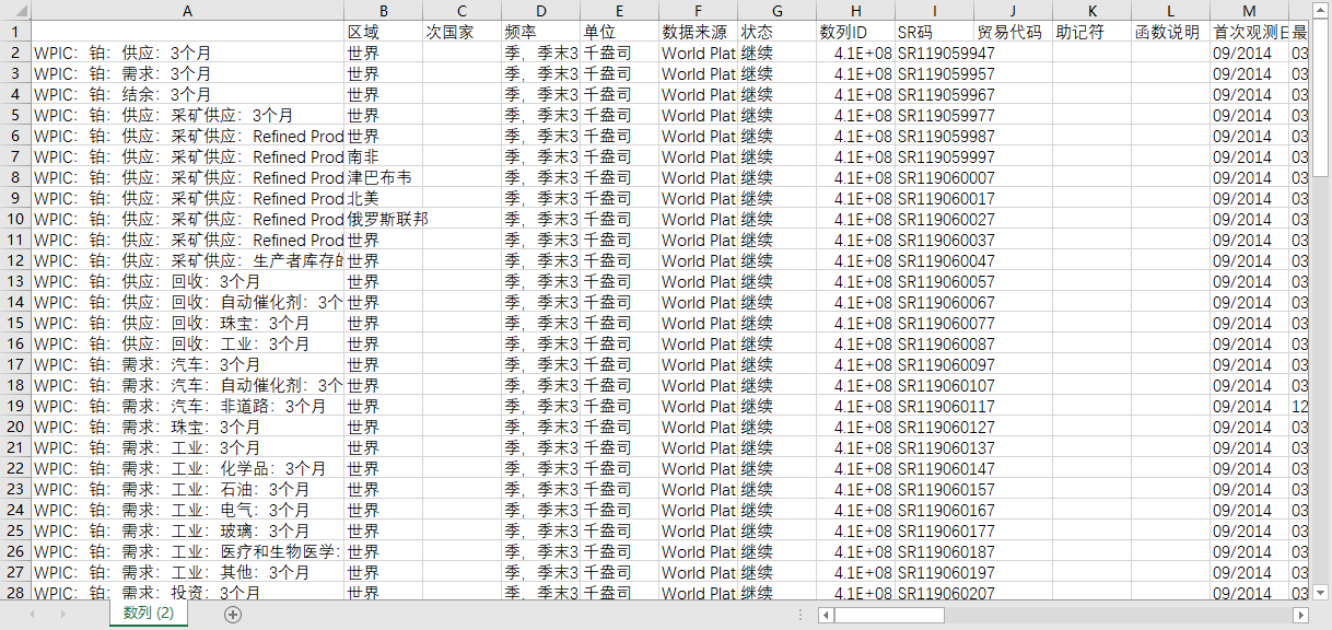 全球世界各国地区WPIC预测铂金供求平衡供应采矿工业投资汽车珠宝玻璃2013-202403季度数据