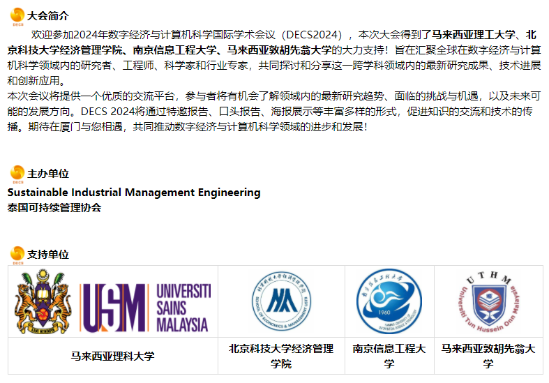 2024年数字经济与计算机科学国际学术会议(DECS2024)