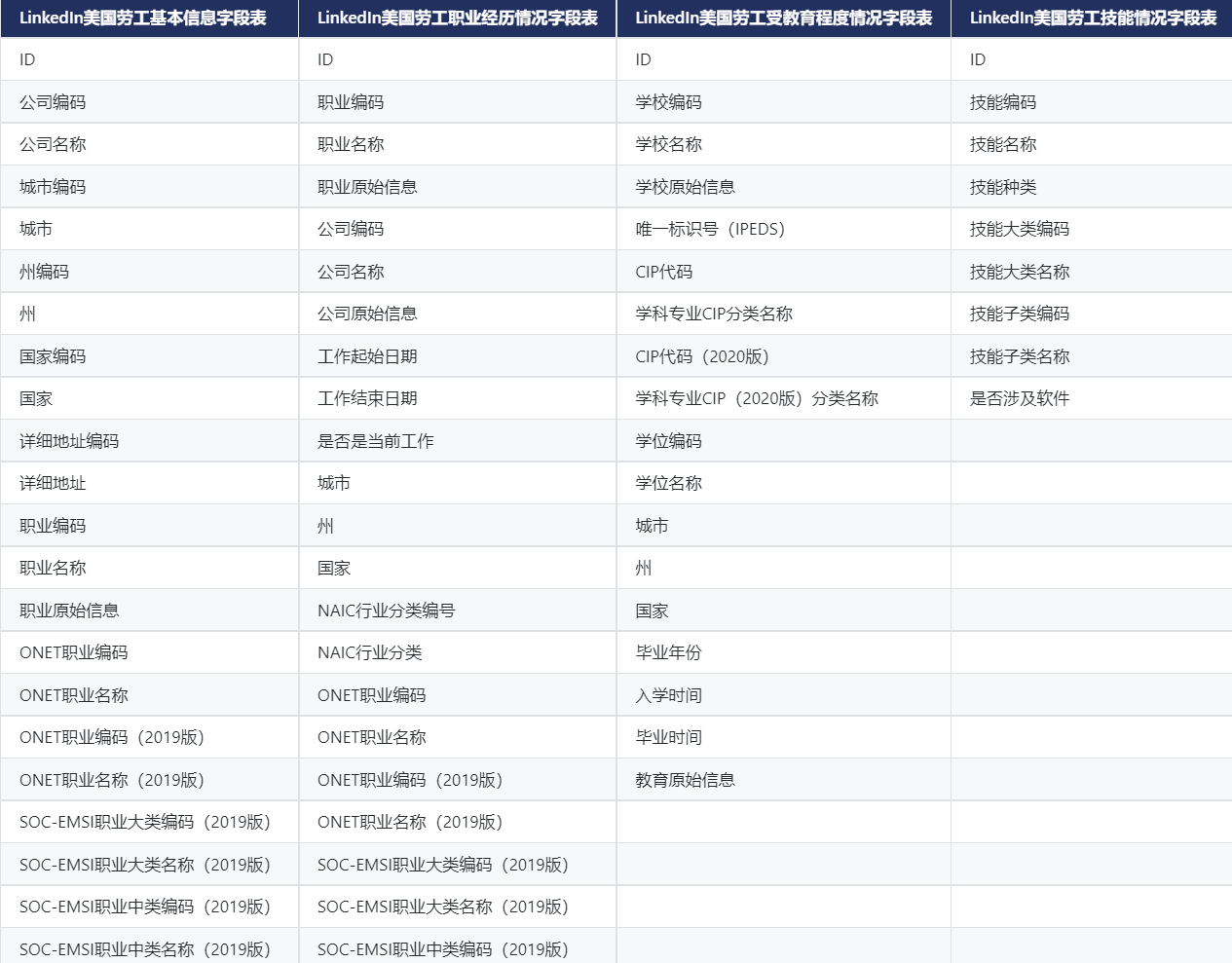 CnOpenData LinkedIn美国劳工简历数据.zip