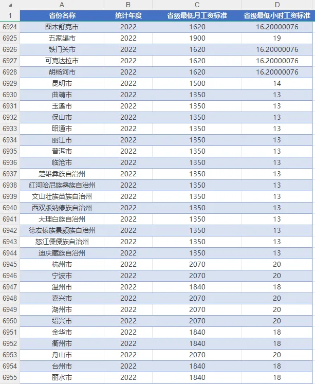 截至2023年4月,我国有包含5个地区月最低工资标准达到2000元以上,其中四川月最低工资标准最高一档为2100元。