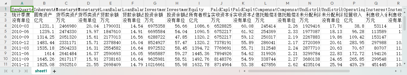 统计季度 固有资产 货币类资产余额 货币类资产余额占比(%) 贷款余额 贷款余额占比(%) 投资余额 投资余额占比(%) 所有者权益 实收资本余额 实收资本占比(%) 信托赔偿准备余额 信托赔偿准备余额占比(%) 未分配利润余额 未分配利润余额占比(%) 经营收入 利息收入余额 利息收入余额占比(%) 信托业务收入余额 信托业务收入余额占比(%) 投资收益余额 投资收益余额占比(%) 利润总额 人均利润
