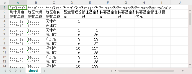 统计月度 地区代码 地区名称 基金管理公司数 管理基金数 私募基金管理人家数 私募基金数 私募基金管理规模
