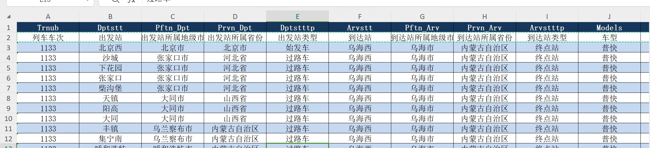 高铁列车信息数据